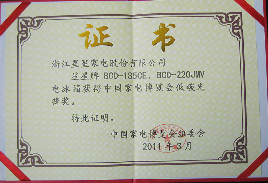 201103 BCD-185CE BCD-220JMV 电冰箱获得中国家电博览会低碳先锋奖