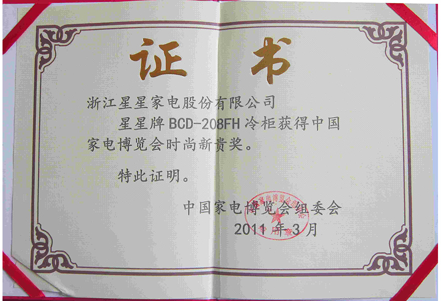201103 BCD-208FH 冷柜获得中国家电博览会时尚新贵奖