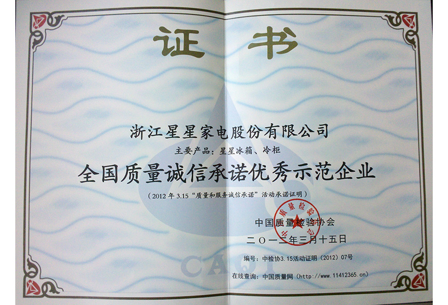 201203 全国质量诚信承诺优秀示范企业